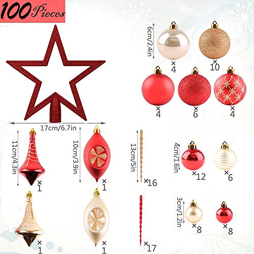 Details: Valery Madelyn Weihnachtskugeln 100 TLG 3-13cm Kunststoff Christbaumkugeln zur Weihnachtsdekoration mit…