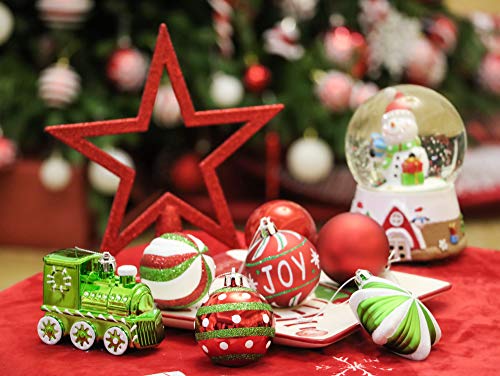 Stark einverstanden passen unsere rote grüne und weiße Produkte qua Kranz, Girlande, Glaskugeln Dekorationen gesetzt. Dieses Komplettpaket ist praktisch und dekorativ, als damit haben sie nicht mehr da unerlässlichen Accessoires für ihren Tannenbaum